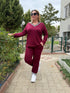 Bordo V Yaka Çizgili Detaylı Rahat Eşofman Takımı