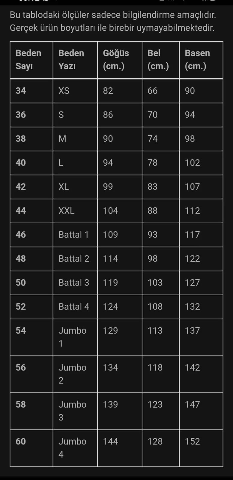 Beden Tablosu